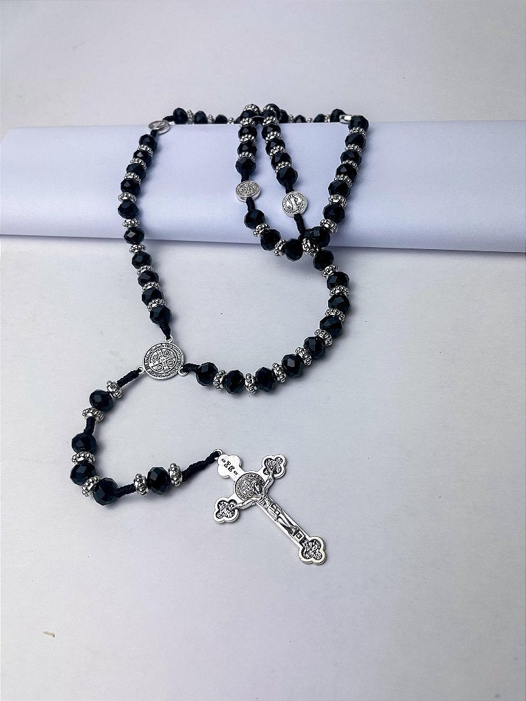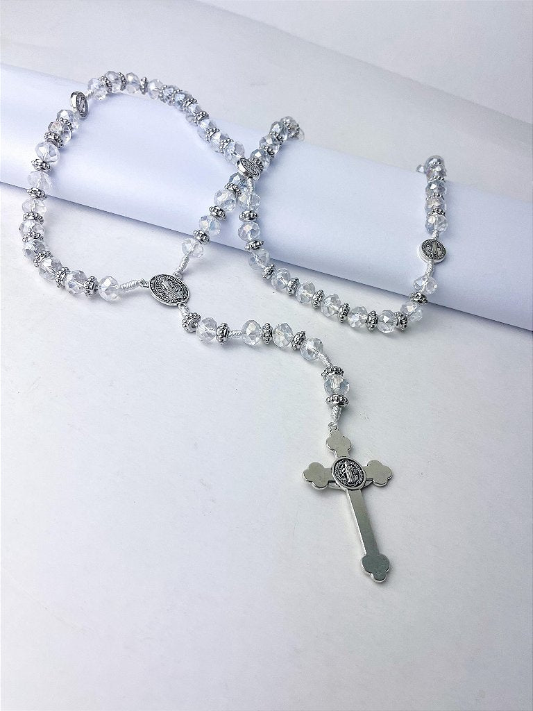 Terço de Cristal com Medalha de São Bento – Proteção e Beleza em Cada Conta